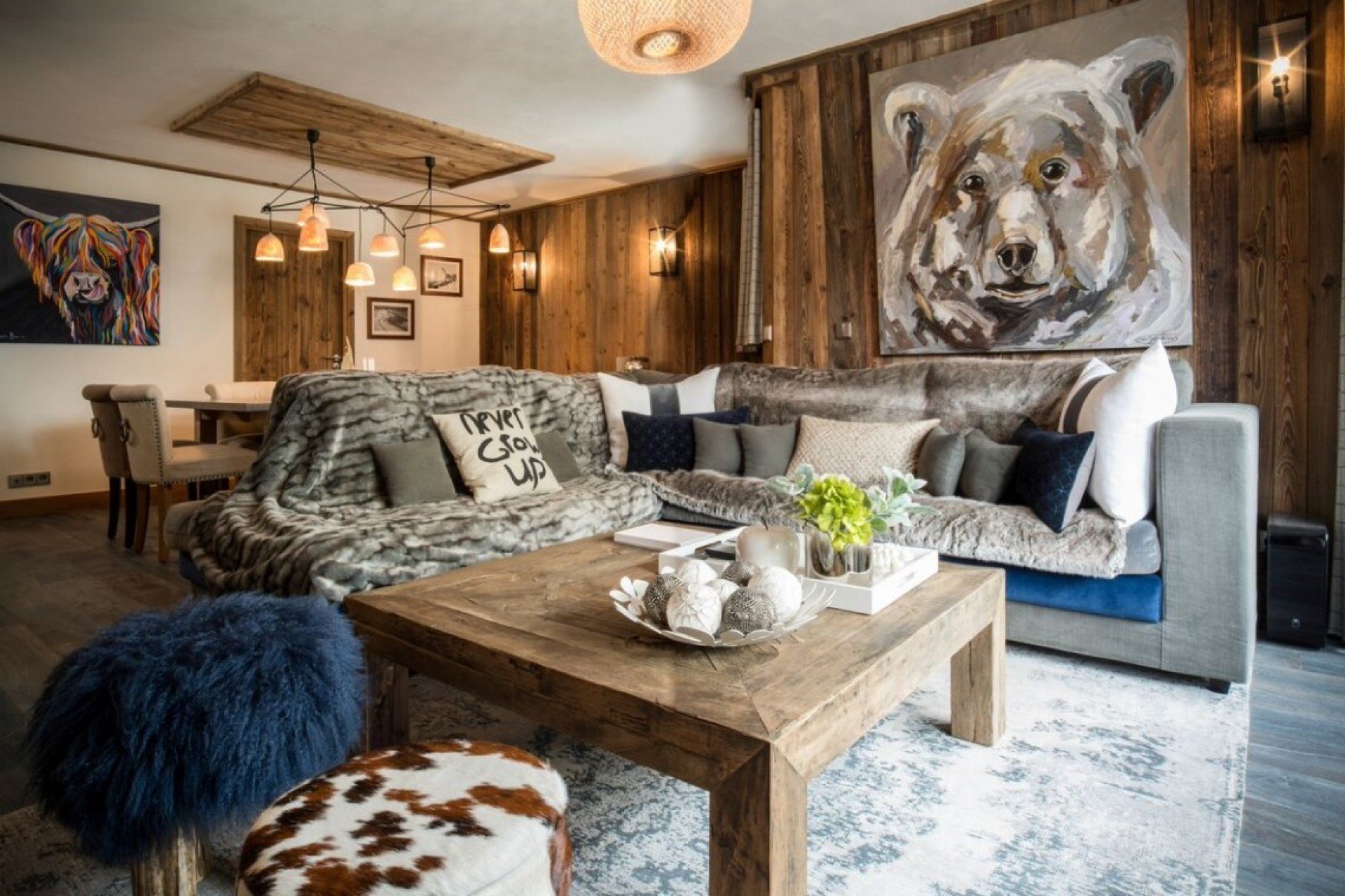 la conception de la chambre spacieuse de style chalet est faite de matériaux naturels.