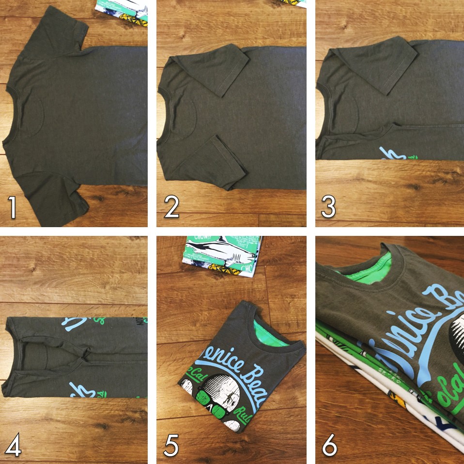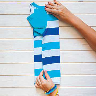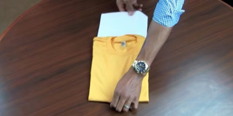 - Faites de même avec le deuxième côté. Pliez le T-shirt plié en deux ou en trois morceaux.