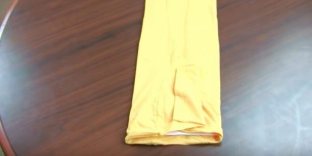 - Pliez les côtés vers l'intérieur un à la fois. Dans ce cas, les manches peuvent être pliées à nouveau, mais dans l'autre sens - afin qu'elles ne se froissent pas.