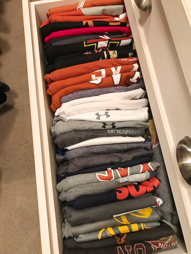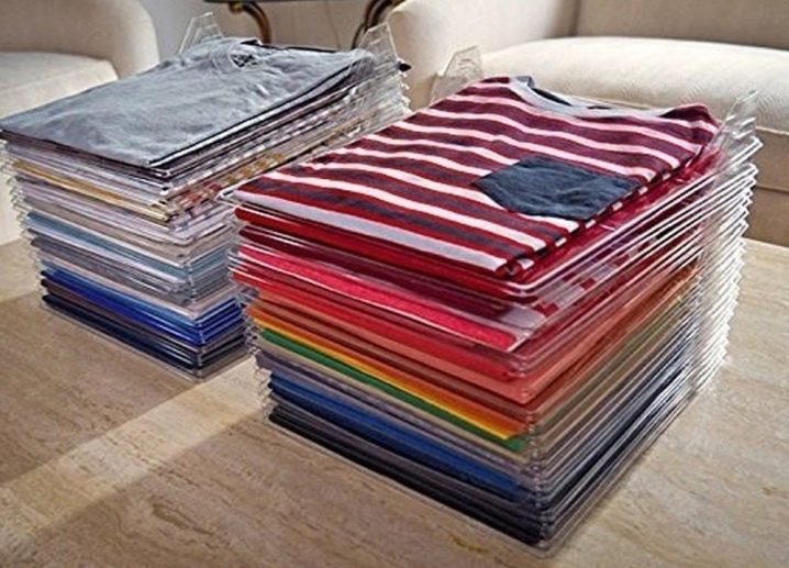 Pour rendre les T-shirts pliés faciles à ranger et à sortir, vous devez utiliser des classeurs spéciaux et des intercalaires qui délimitent les piles.