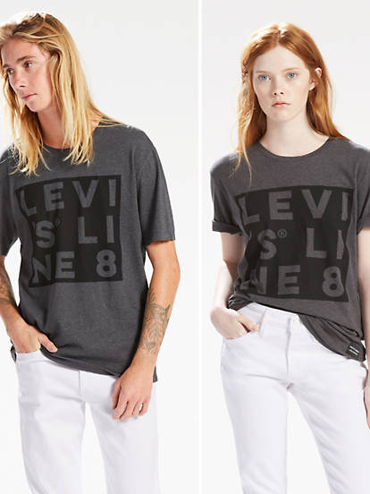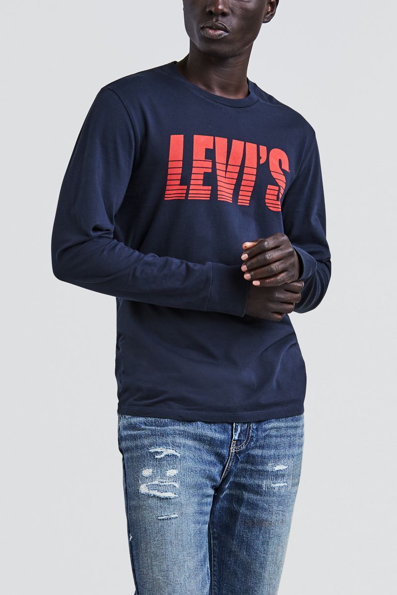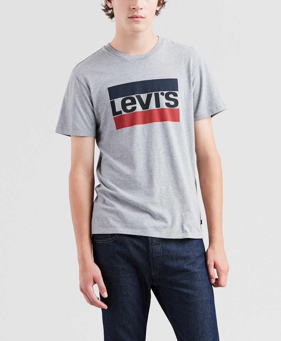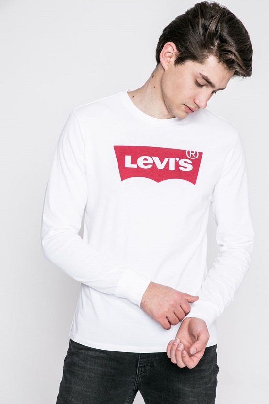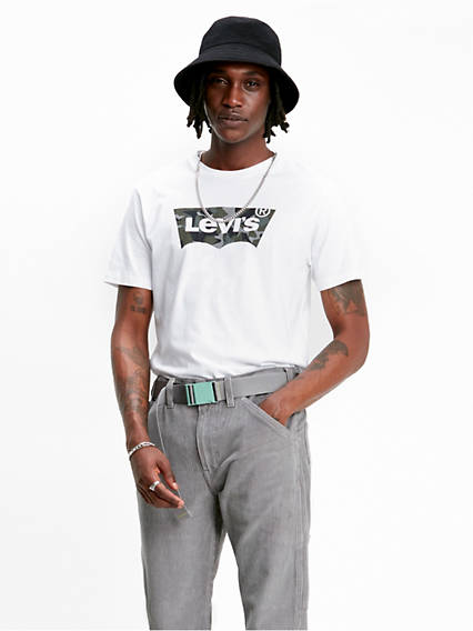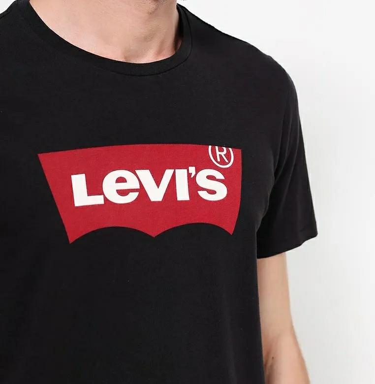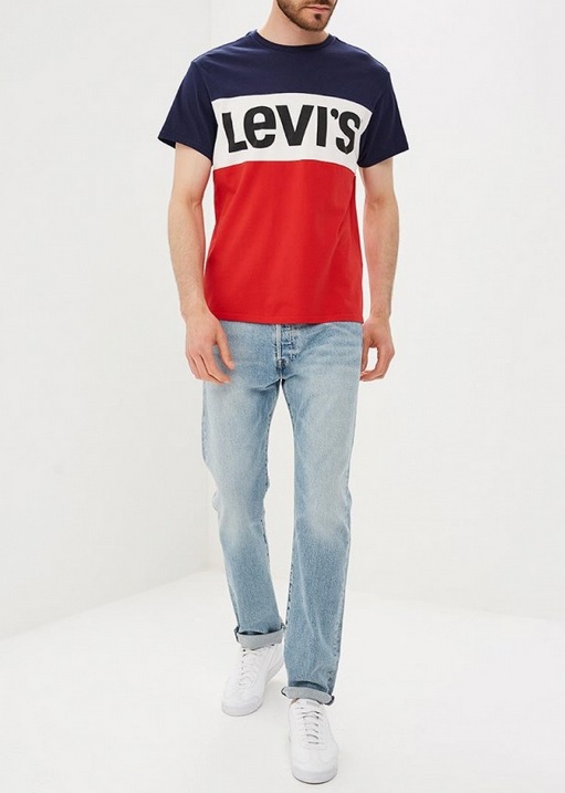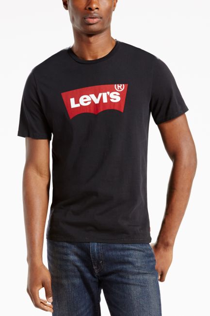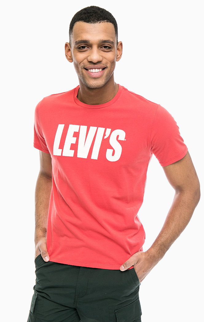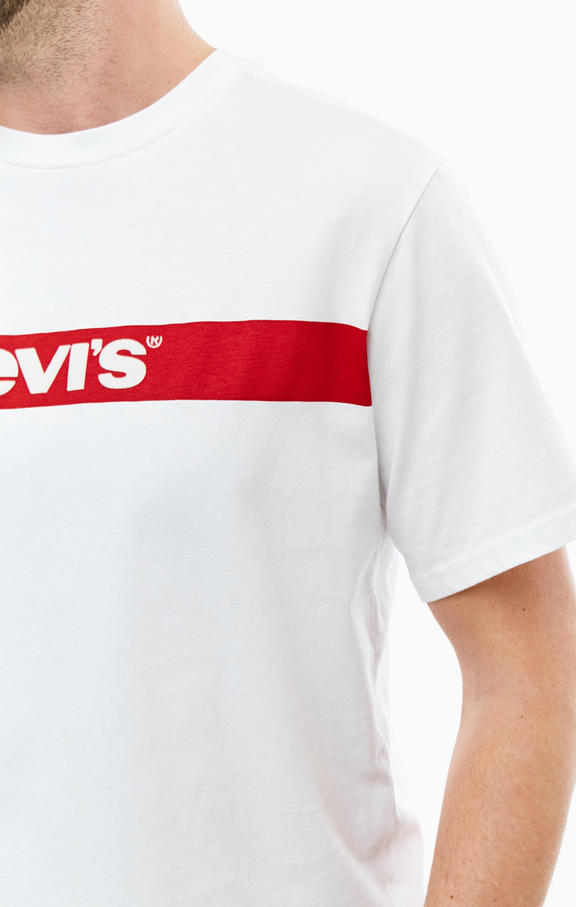 - La version classique d'un t-shirt pour homme de la marque est blanc avec des manches courtes et le logo rouge signature de Levi. Ces modèles à col rond sont en 100% coton.