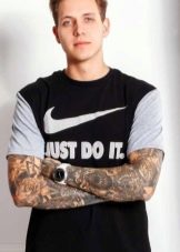 De tels modèles sont préférés pour être portés par des hommes qui revendiquent l'originalité et cherchent à souligner leur non trivialité. L'abstraction, complétée par une inscription, est l'une des manières les plus emblématiques de décorer des t-shirts. Le lettrage est généralement aussi complexe et complexe que l'image elle-même. Le motif peut décorer à la fois l'ensemble du t-shirt et le centre. De tels modèles sont parfaits pour les jeunes créatifs. À l'âge adulte, des options plus discrètes sont préférées.