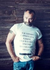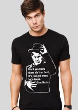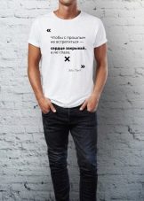 Les inscriptions sur le t-shirt peuvent être non seulement drôles et humoristiques, mais aussi significatives. Les modèles décorés de citations célèbres de personnes formidables, les phrases d'œuvres sont très populaires. De tels T-shirts sont préférés par les intellectuels, les hommes pleins d'esprit. Le plus souvent, ils acquièrent une inscription en quelque sorte proche de leur vision du monde, associée à un événement mémorable. La plupart de ces inscriptions sont créées exclusivement, sur commande.
