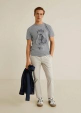 Outre, Le t-shirt avec l'inscription doit être bien combiné avec d'autres articles de l'ensemble... Si les t-shirts monochromes sont combinés avec presque tous les types de vêtements, les modèles avec inscriptions ont des limites. Ces choses ont un look optimal avec des pantalons de survêtement, des jeans, des pantalons informels tels que des chinos, des cargos, des pantalons. La veste est absolument exclue !