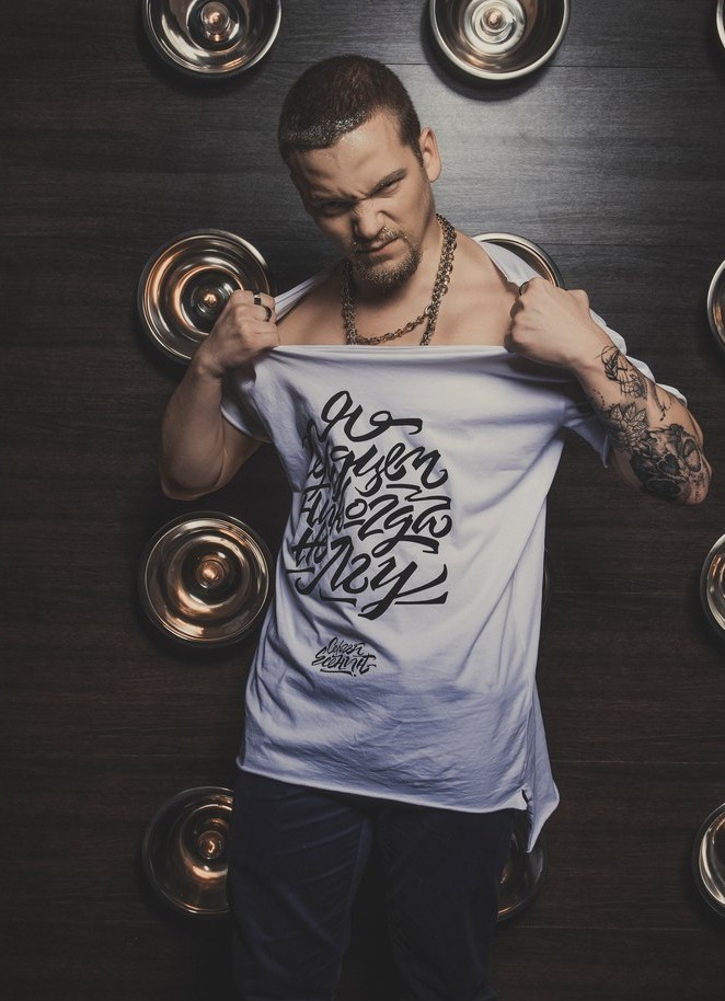 Les t-shirts avec des slogans peuvent avoir différentes découpes : pour les épaules larges, en forme de V, pour les épaules étroites - classique.