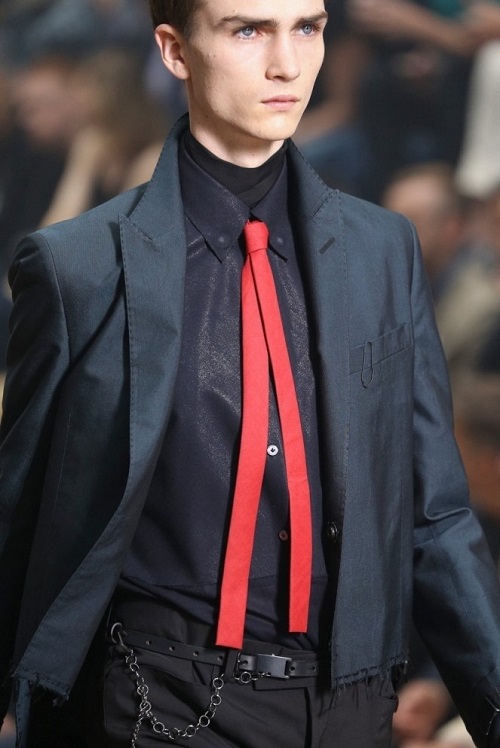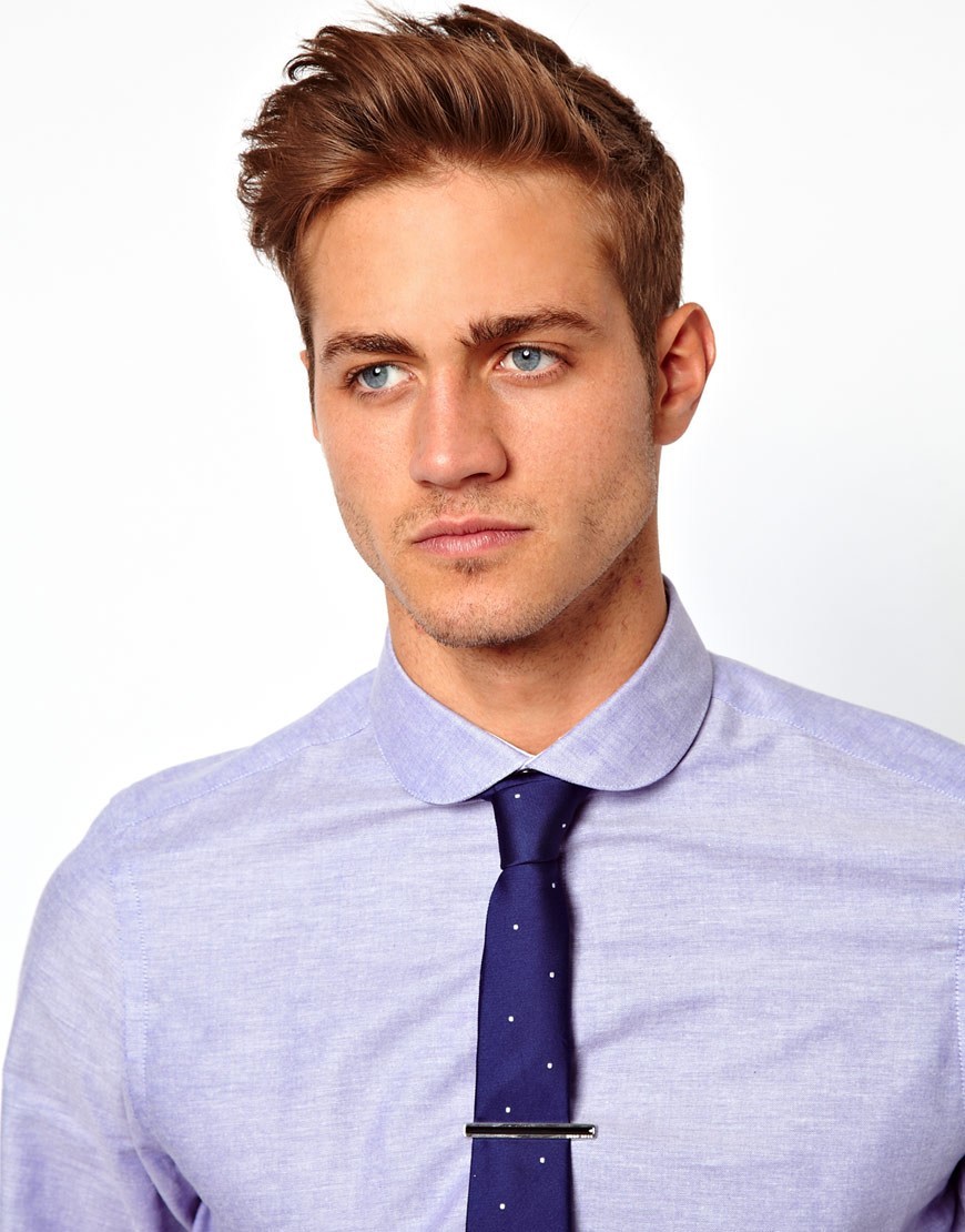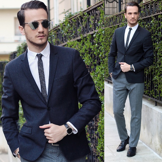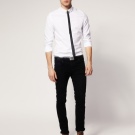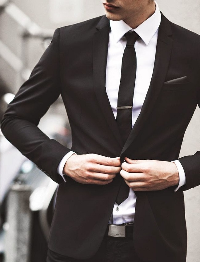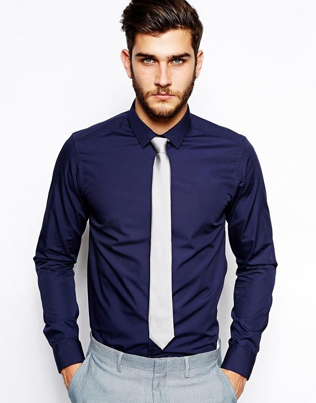 - Pour la formation d'un arc d'affaires convient cravate étroite monochrome en noir ou bleu foncé, en tandem, vous pouvez prendre une chemise moulante avec un col laconique. Il vaut mieux éviter les blazers et les chemises surdimensionnés.