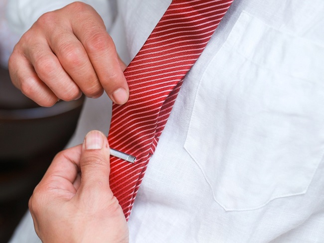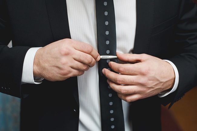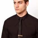 Comme nous l'avons déjà mentionné, un attribut obligatoire en combinaison avec une cravate rétrécie devrait être un clip... Cela est dû aux particularités du matériau, qui ne peut pas rester au même endroit, se plie ou pend constamment. L'homme lui-même peut ne pas voir une telle négligence, cependant, son arc de côté semblera complètement gâté.