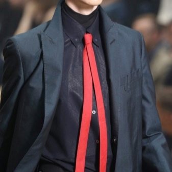 Cependant, la cravate peut être combinée avec d'autres accessoires. Le skinny a fière allure avec de petits bijoux - clips, boutons de manchette et montres, les gros éléments créeront une dissonance importante dans l'arc.