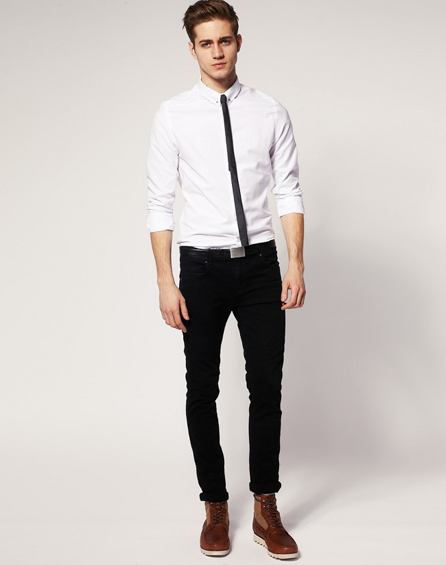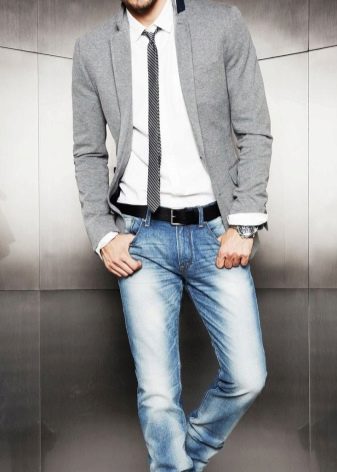- Skinny est le seul modèle de cravate qui semble harmonieux avec un jean... Cependant, veuillez noter que dans ce cas, le style général doit être légèrement bâclé.