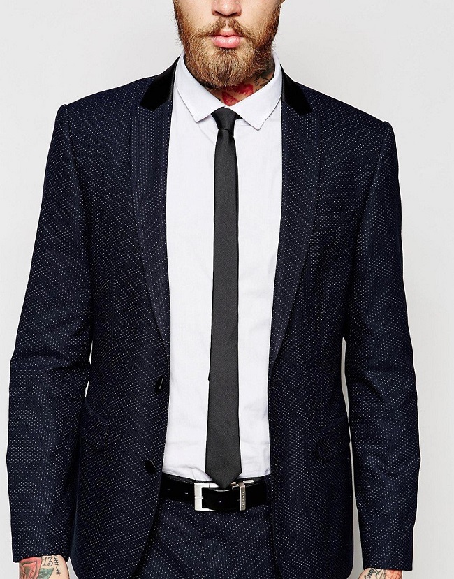 - Très il est important de combiner correctement une veste, une cravate et une chemise. S'il y a une impression sur une veste ou une chemise, alors l'accessoire doit certainement être monochrome. Si une chemise avec une veste sans motif, alors un skinny peut être avec ou sans motifs.