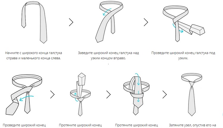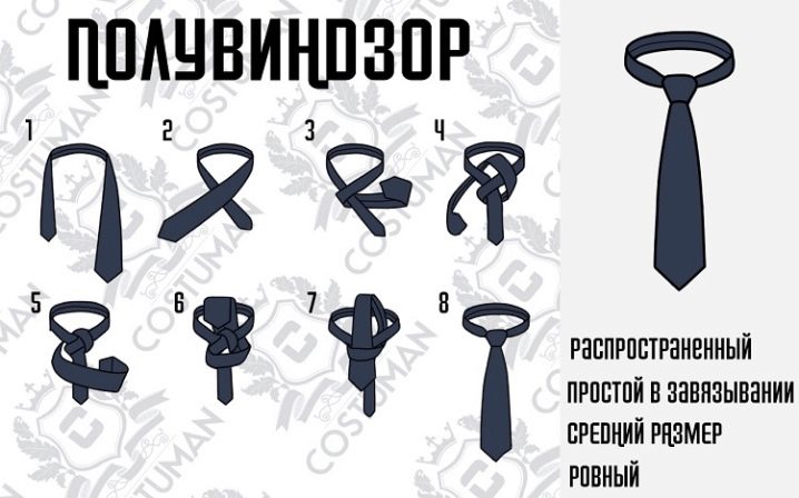 Un tel nœud s'harmonise harmonieusement avec les costumes décontractés, ainsi que les chemises traditionnelles. Le serrage comporte plusieurs étapes.