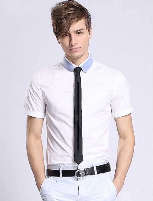 - Il en va de même pour le port chemises usées, c'est-à-dire pas rentrées dans un pantalon... Chez les jeunes, les adolescents et les adolescents, de telles combinaisons sont très élégantes et, à certains égards, même audacieuses. Mais une telle chemise ajoutera du désordre et du manque de propreté à l'image d'un adulte.