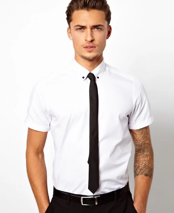 - "Hareng" est très ça va bien avec une chemise à manches courtes - de tels modèles sont généralement choisis par des adolescents, tandis qu'un homme mûr a l'air ridicule sous une telle forme.