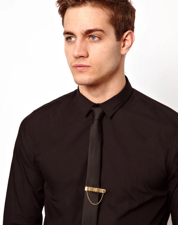 Le clip doit tenir fermement la cravate, pour les minces il est conseillé de choisir un modèle pas trop longafin qu'il ne dépasse pas les limites. La pince doit être fine, sans aucun décor - il est préférable d'utiliser des produits métalliques recouverts d'argent ou de dorure, une légère impression est autorisée. Les produits avec des pierres et des décorations lumineuses dans ce look seront inappropriés.