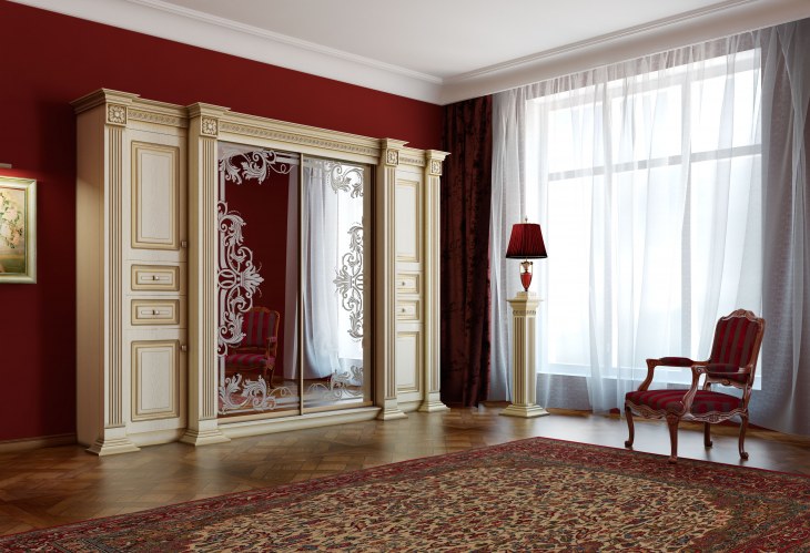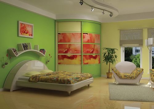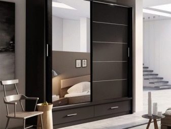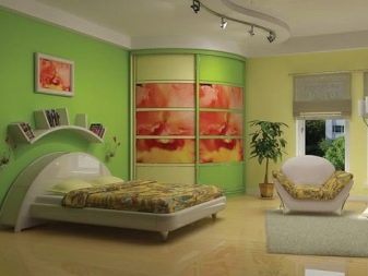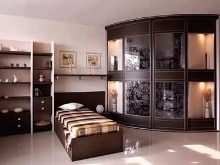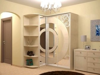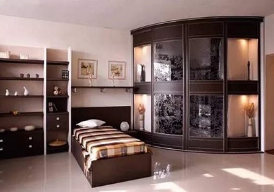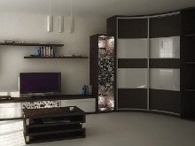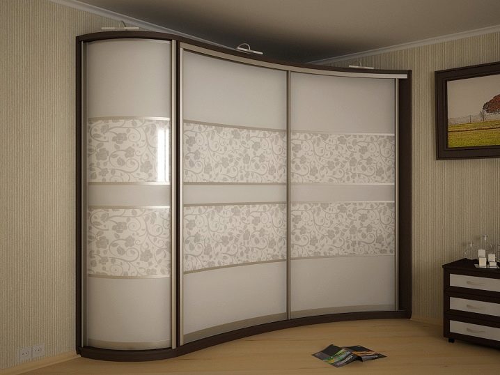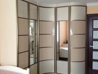 La première option permet de se concentrer sur les portes, qui peuvent être plates, courbes ou concaves. Les armoires avec des éléments incurvés sont appelées armoires à rayon. La structure est généralement créée du sol au plafond, par conséquent, elle tire le meilleur parti de l'espace libre. La principale différence entre les armoires encastrées et la version armoire réside dans le lieu de fixation des rails de guidage des portes. Dans les produits sans étui, des éléments supplémentaires sont fixés au sol et au rideau, et dans les versions avec étui, au meuble lui-même.