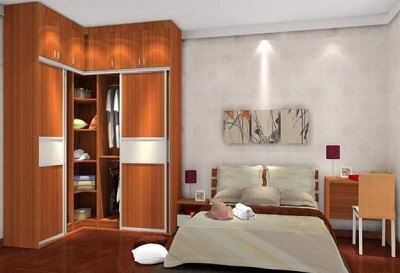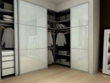 En l'absence d'un mur libre pour accueillir un meuble complet, vous pouvez utiliser un coin pour résoudre ce problème. Le meuble d'angle peut être en forme de L, où les dimensions de chaque pièce seront ajustées à une certaine pièce. Grâce à une telle armoire, dans une petite zone de la pièce, vous pouvez placer un grand nombre de choses en utilisant rationnellement l'espace libre.