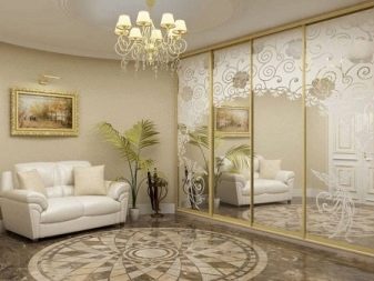 Une option belle, élégante et intéressante est l'utilisation de portes en verre, qui peuvent être modelées ou gravées par sablage. L'option la plus à la mode en ce moment, qui est choisie pour la chambre à coucher, la chambre de bébé et le salon, est l'impression photo. Grâce au dessin sur la surface du verre, les vantaux acquièrent un aspect attrayant. Une variété de modèles peut satisfaire les goûts de n'importe quel client.