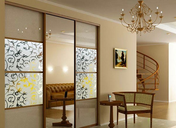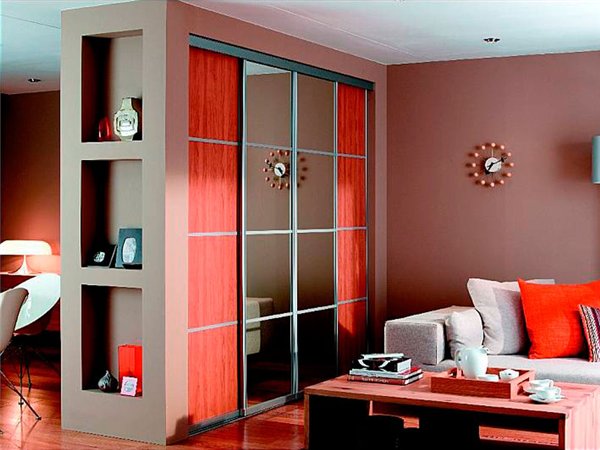 - Rôle décoratif et appliqué - à l'aide d'armoires coulissantes, vous pouvez diviser la pièce en zones, séparer le couloir de la partie résidentielle.