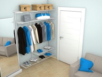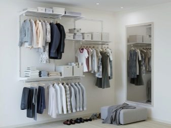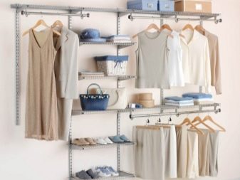 Ces systèmes sont idéaux pour les petits appartements, ils permettent d'économiser au maximum de l'espace libre. Les étagères peuvent être placées dans n'importe quel coin libre de la maison, tout en créant un dressing confortable et élégant.