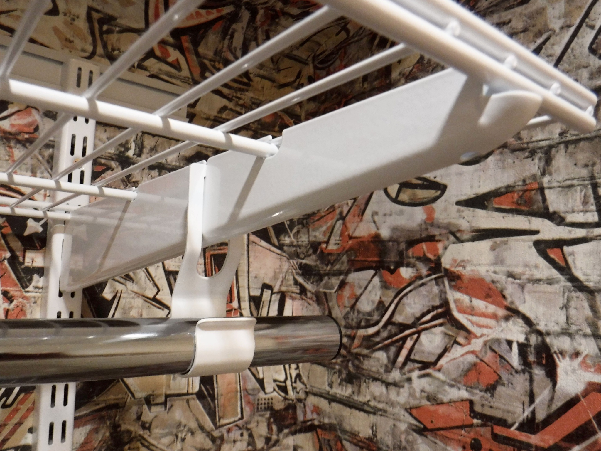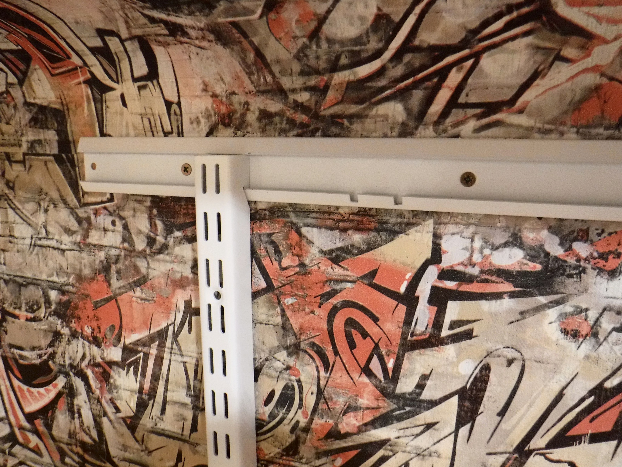 - À l'aide d'attaches, nous fixons le rail au mur. Lorsque vous achetez un système de garde-robe, assurez-vous que le matériel que vous achetez est adapté à votre type de mur.