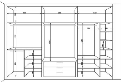 - La profondeur du segment central ne doit pas être inférieure à 50 cm. Cela est dû au fait que la largeur des cintres standard est de 45 cm. La profondeur optimale est d'environ 60 cm. Si la valeur est trop grande, cela peut être difficile pour accéder au contenu.