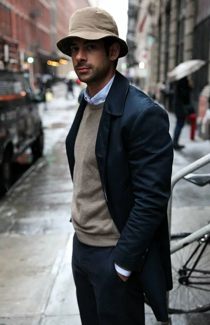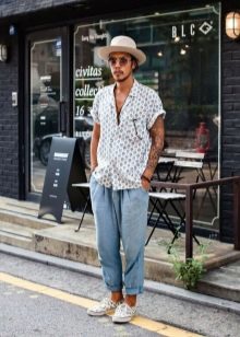- le chapeau mou combiné avec un style urbain de tous les jours. Une chemise à col montant et un pantalon fin sans flèches feront un look à la mode, associé à une telle coiffe.