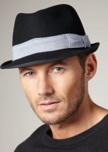 - Chapeau Fedora a une apparence plus présentable. Bord large, légèrement incurvé vers l'avant et rehaussé à l'arrière, oblige à le porter avec un costume et une chemise. Il a une structure assez dense, le plus souvent il est en feutre.