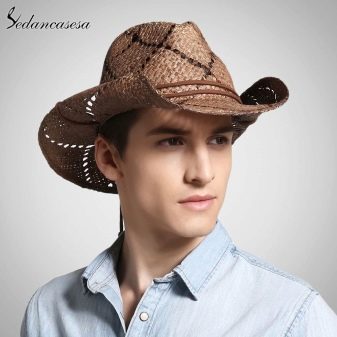 - Chapeau de cowboy positionné à l'origine comme une coiffe d'un berger - un cow-boy américain. Les champs larges et la base de paille douce protégeaient parfaitement la tête du soleil brûlant et du vent dans les zones ouvertes. De nos jours, un chapeau de cowboy est acceptable en combinaison avec un costume d'affaires.En Russie, ce type de chapeau est utilisé avec un costume formel décontracté.