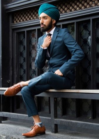 - Turban ou turban en combinaison avec une veste formelle, un pantalon avec des flèches et des bottes pointues, ils conviennent à un look d'affaires. Une chemise légère avec une coupe ample, rappelant une tunique, et un pantalon en tissu léger de couleurs claires, combinés à un turban créeront un style oriental.