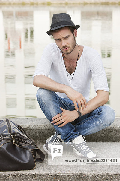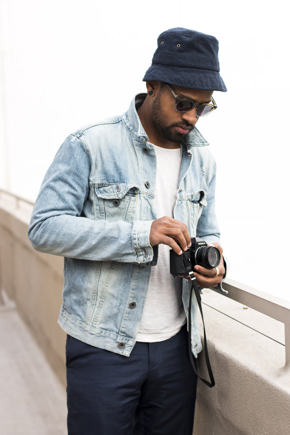 - Chapeau de cowboy, complété par un ensemble en jean associé à un T-shirt, complète l'image d'un homme libéré de l'agitation de la ville.