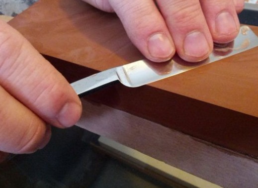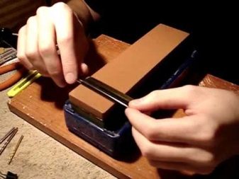 Il processo di affilatura della lama con carta vetrata è simile all'utilizzo di una pietra per affilare... È importante che smeriglio la carta era a grana fine e leggermente inumidita.