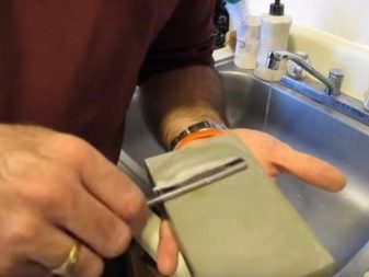 Per affilare le lame di rasoio, puoi usare pietra naturale giapponese... Tuttavia, per lavorarci, devi avere almeno un'abilità minima, altrimenti non sarà possibile affilare la macchina la prima volta. La pietra deve avere una struttura uniforme senza grosse particelle. Prima del lavoro, è necessario bagnarlo leggermente con acqua semplice. Quindi il rasoio esegue 20-30 passaggi nella direzione opposta ai movimenti di rasatura.