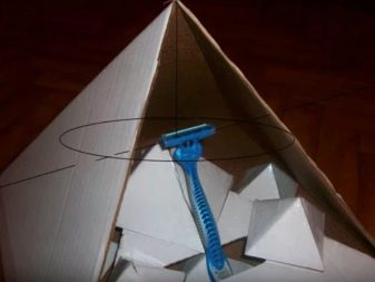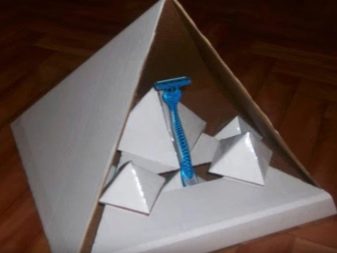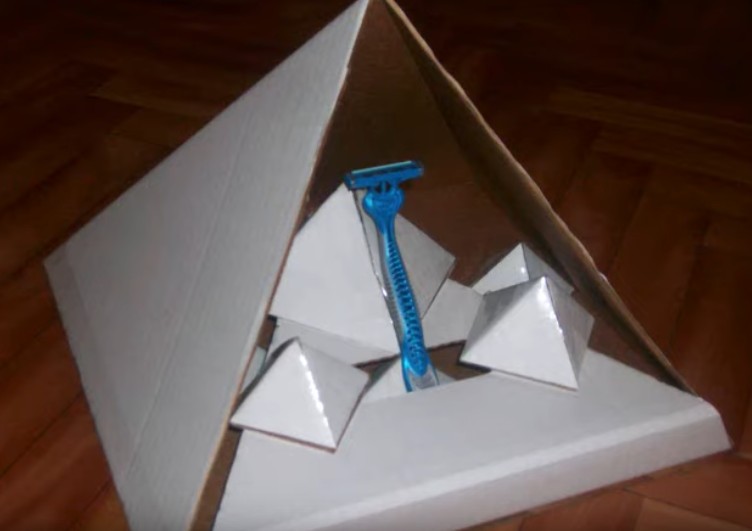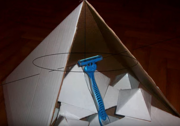 Un modo abbastanza interessante ed economico per affilare la lama è una piramide di cartone. Dovrebbe essere realizzato in base alle dimensioni del rasoio da barba. All'interno c'è un piedistallo con una lama di bloccaggio. Viene praticato un piccolo foro sul lato sud del corpo della piramide. La struttura creata in questa posizione dovrebbe resistere per una settimana. Non può essere toccato, spostato e nemmeno toccato con le mani. Dopo una settimana, le lame diventano affilate e molto efficaci.