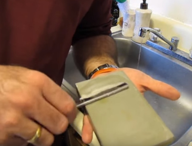 Puoi guardare il video qui sotto come affilare a mano una lametta da barba.