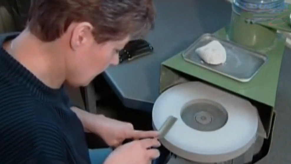 - inizialmente viene eseguita un'affilatura grossolana, che consente di ripristinare la geometria degli avanzamenti dei taglienti delle piastre delle lame;