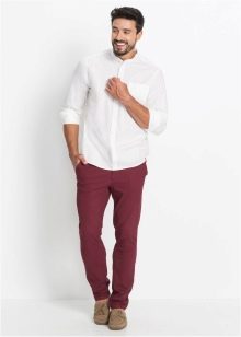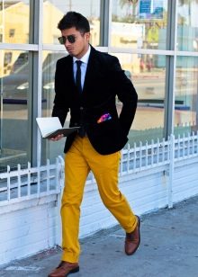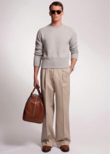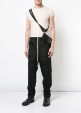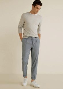 Considerando ogni tipo di pantalone, dovrai dedicare molto tempo per scoprire la loro corretta combinazione con altri elementi di abbigliamento. Tuttavia, gli stilisti su questo tema hanno presentato la loro versione. Devi stare di fronte a uno specchio per vedere il tuo riflesso in piena crescita. Indossare pantaloni preparati. Quindi procedere alla prova su un top adatto. Questo metodo ti consente di abbreviare i tempi di ricerca dell'arco perfetto, mentre l'uomo si sentirà il più a suo agio possibile.