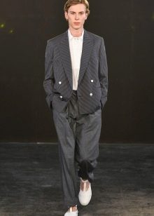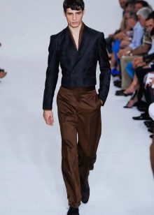 Nel 2019, questo tipo di pantaloni è stato un successo nel settore della moda autunno e inverno. La loro caratteristica distintiva risiede nell'ampia sartoria, grazie alla quale gli uomini sentono leggerezza e comfort quando si muovono. L'aspetto originale del palazzo non è adatto a tutti i rappresentanti del sesso più forte. Gli uomini di età, in base alle loro preferenze, non prenderanno in considerazione questo tipo di pantaloni. Ma i giovani, al contrario, andranno volentieri da loro per una festa.
