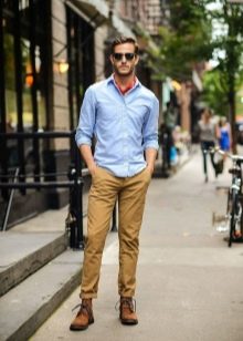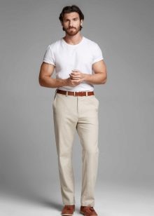 Il beige è il colore utilizzato dagli stilisti nello sviluppo dei pantaloni casual. Sulla base delle ultime tendenze della moda, è stato rivelato che la tonalità del caffè è l'opzione più adatta per i pantaloni da uomo di qualsiasi tipo.