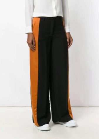 Particolare attenzione dovrebbe essere prestata alle stampe, modelli speciali su tessuto. In un passato non così lontano, i pantaloni senza immagini erano l'ideale, ma oggi le cose sono cambiate. Le tendenze della moda implicano la presenza obbligatoria di strisce, cellule e altre forme sul tessuto.