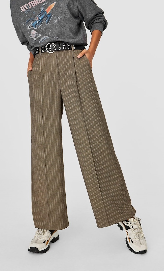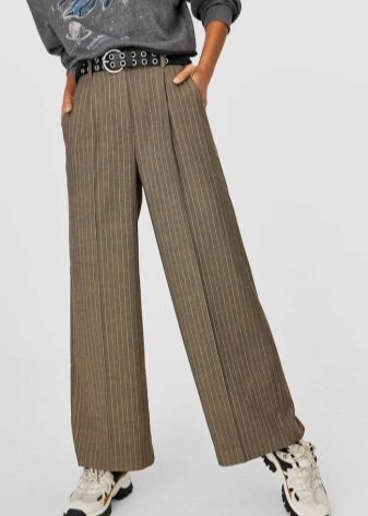 I pantaloni larghi sono un capo di abbigliamento gratuito. Sono perfetti con magliette e camicie casual. Sneakers o mocassini aiuteranno a completare il look di tutti i giorni.