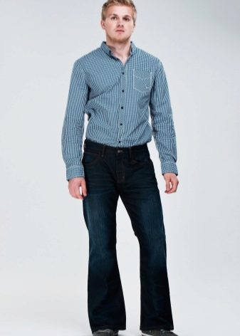 Ideale per uomini in sovrappeso. Il taglio speciale dei pantaloni (oversize) aiuterà a mascherare gambe e pancia piene. in cui I pantaloni a zampa sembrano eleganti, soprattutto se abbinati a capispalla coordinati come una camicia o un mezzo capo. Inoltre, la vestibilità ampia dei pantaloni può essere indossata in qualsiasi momento dell'anno. Tuttavia, in un incontro di lavoro, saranno inappropriati. Alcuni ragazzi confrontano tra loro svasati e culotte, ma questo è inutile. Svasato - pantaloni allungati, culottes - una versione accorciata dei pantaloni.