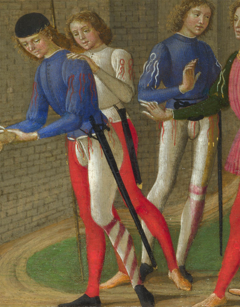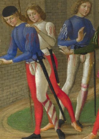Nel Medioevo divenne consuetudine indossare pantaloni corti, che ricordano i pantaloncini moderni, a cui erano legate le calze. Allo stesso tempo, la combinazione di colori di pantaloni e calze doveva essere diversa. Sicuramente non molte persone lo sanno, ma il colore delle calze parlava dello stato del suo proprietario. Il capo di abbigliamento collegato era chiamato chasses. L'uomo in chausses sembrava un ballerino.
