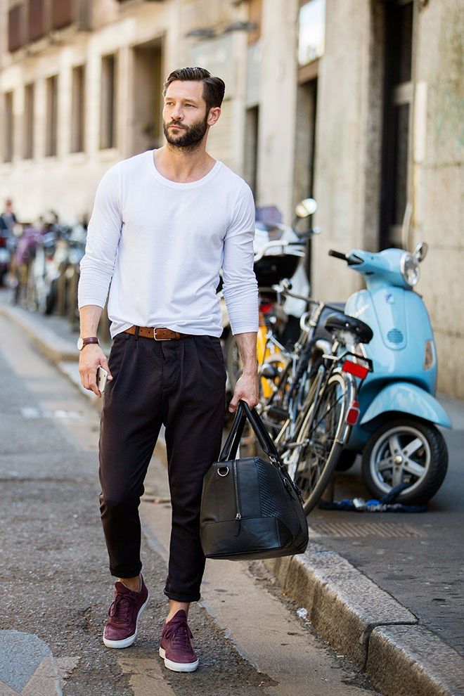 Oggi, gli stilisti sviluppano un'ampia varietà di pantaloni per uomini di tutte le età. Nella varietà di modelli e stili, puoi facilmente confonderti, per cui non sarà possibile scegliere l'elemento superiore destro dell'arco. Per evitare tali situazioni, si suggerisce di considerare la combinazione ideale di sopra e sotto per un look maschile.