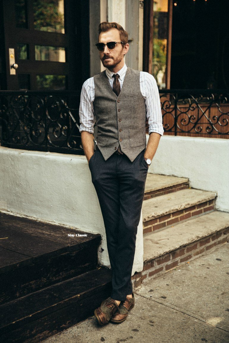 I pantaloni classici dovrebbero avere una combinazione di colori discreta. Camicie, gilet e giacche sono perfetti per loro. Il classico è rigore. Non per niente politici, uomini d'affari e uomini di professioni serie indossano abiti classici.