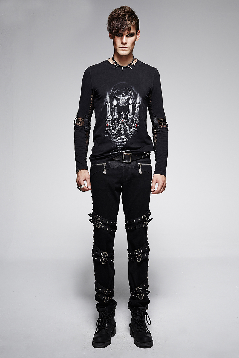 Stravaganza, shock, originalità: questi sono i pantaloni che si abbinano allo stile del Punk-Rock. I pantaloni in vera pelle possono avere una varietà di stili, trame e, naturalmente, colori. Fibbie metalliche, serrature, cinture e punti sono usati come decorazione.