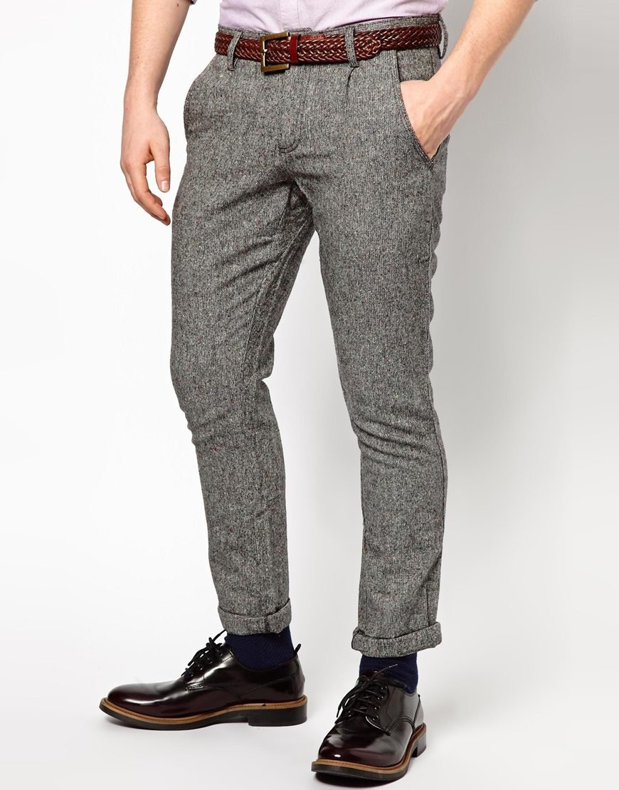 - I pantaloni dovrebbero enfatizzare la dignità del fisico di un uomo. Ad esempio, i pantaloni skinny sono adatti a ragazzi con vita stretta e gambe magre.
