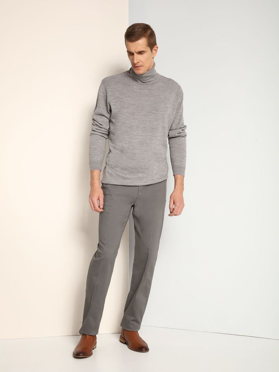 Tutte le varietà disponibili di pantaloni da uomo sono presentate nei toni del grigio. Quando si tratta di combinare con altre tonalità, la scala di grigi è versatile e abbastanza pratica.