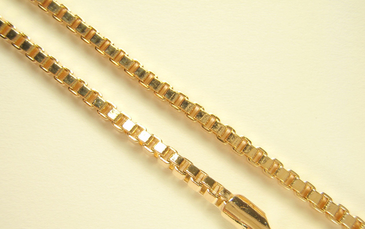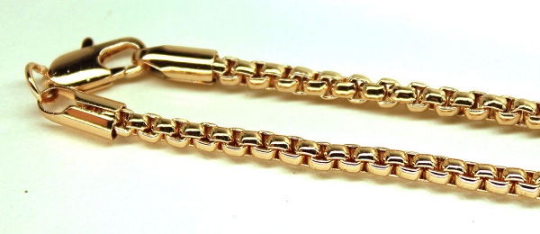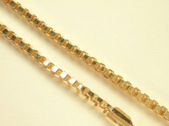 - Veneziana... Una delle varianti popolari della tessitura dell'ancora, si distingue per una forma rettangolare o quadrata dei collegamenti. Sono perpendicolari. Tale tessitura è piuttosto laboriosa nell'esecuzione, quindi non tutti i maestri intraprenderanno la produzione manuale di tali catene, di solito vengono utilizzate macchine speciali.