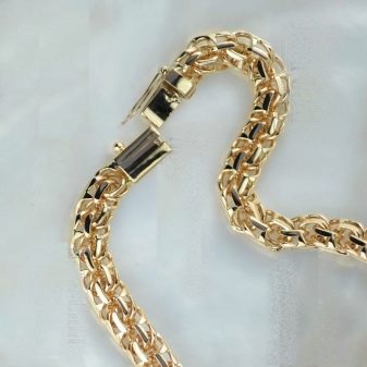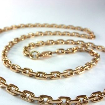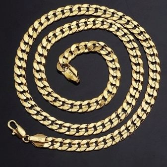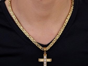Da indossare con un ciondolo o un ciondolo acquisiscono catene non cave con uno spessore di 5-6 mm, catene più di 8 mm e si mettono su se stesse. Di solito agli uomini non vengono dati gioielli troppo sottili, nonostante il fatto che l'oro, anche in questo design, non sia economico. Meglio spendere un po' di più, ma allo stesso tempo acquistare un modello decente.