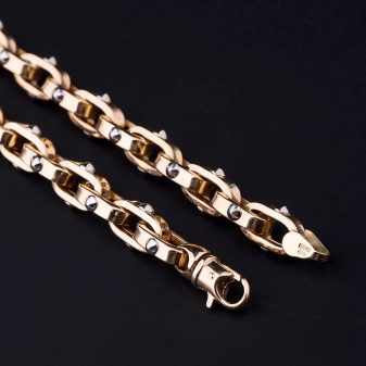 - corazzato. Tutti i blocchi di armatura del carapace si trovano su un unico piano e sono caratterizzati da bordi laterali ben levigati. Tali catene sono realizzate utilizzando la lavorazione a mano e a macchina, mentre i prodotti fatti a mano sono molto più costosi e richiedono una reale abilità da parte del loro produttore. Le catene d'oro, realizzate sulla base di una connessione a carapace, sono abbastanza comode da indossare e molto pratiche.